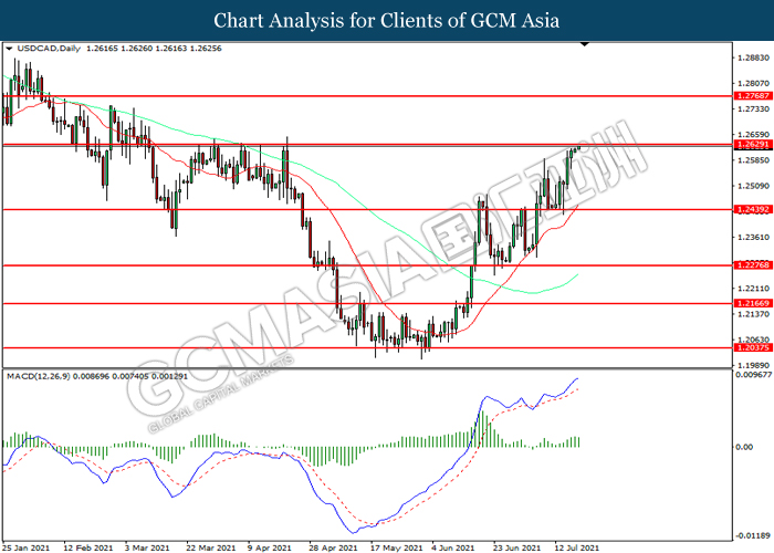 USDCAD, Daily: USDCAD telah didagang dengan lebih tinggi sementara kini menguji di tahap rintangan 1.2630. MACD yang memaparkan momentum bullish mencadangkan pasangan ini untuk melanjutkan keuntungannya selepas ia memecah tahap rintangan tersebut.