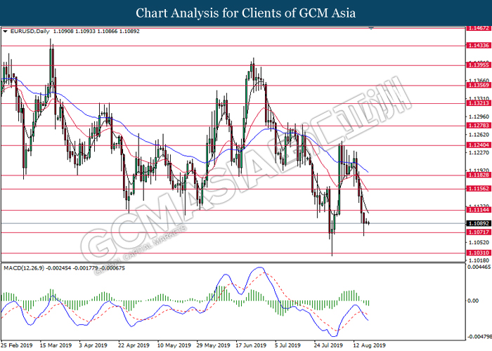 EURUSD, Daily: EURUSD telah didagang dengan lebih rendah berikutan dengan pemecahan dari tahap sokongan sebelumnya di 1.1115. MACD yang menunjukkan momentum bearish mencadangkan pasangan ini untuk melanjutkan kerugiannya ke arah tahap sokongan di 1.1070.