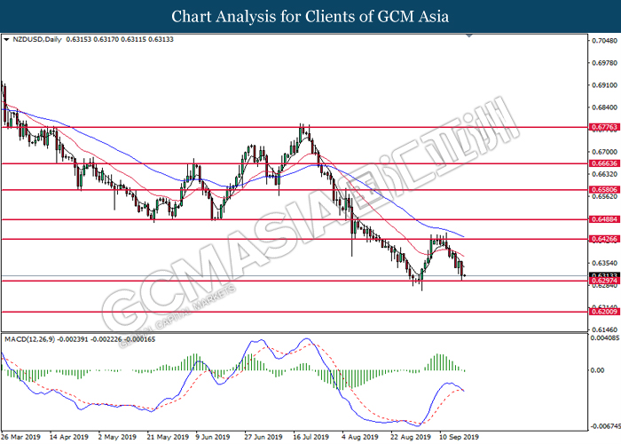 NZDUSD, Daily: NZDUSD telah didagang dengan lebih rendah sementara ia sedang menguji tahap sokongan 0.6295. MACD yang memaparkan isyarat bearish mencadangkan pasangan ini untuk menurun selanjutnya dan menuju ke arah 0.6295.