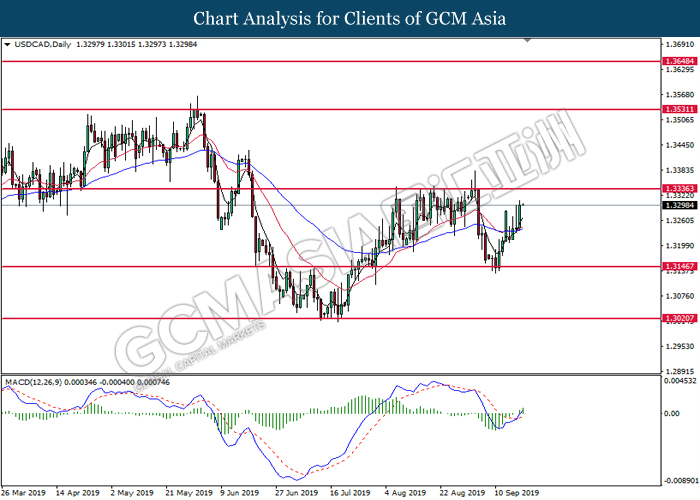 USDCAD, Daily: USDCAD telah didagang dengan lebih tinggi selepas ia melantun dari tahap sokongan 1.3145. MACD yang memaparkan momentum bullish mencadangkan pasangan ini untuk melanjutkan keuntungannya ke arah tahap rintangan 1.3335.