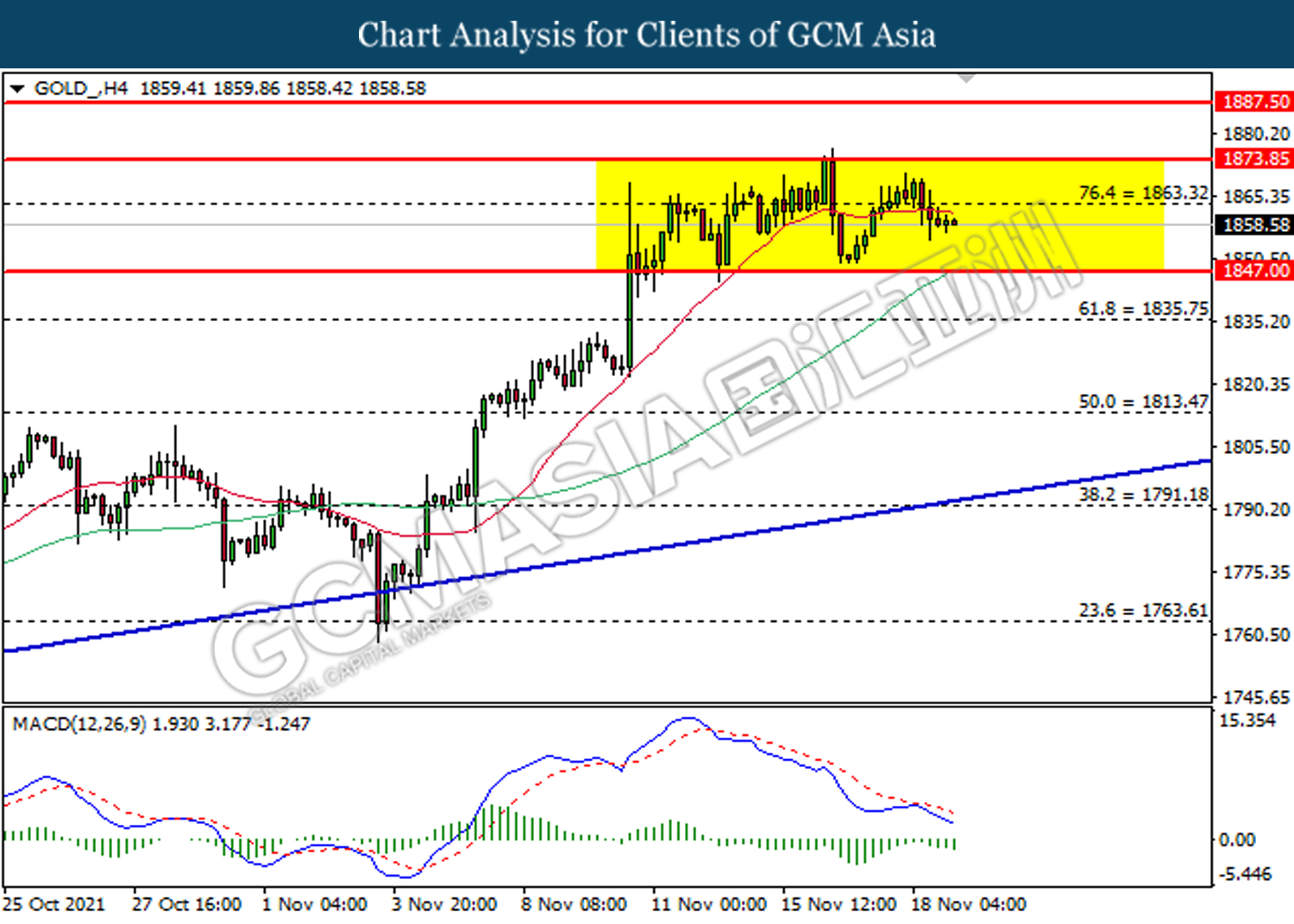 Indeks Dolar yang didagang terhadap sebakul enam pasangan mata wang utama telah menyusut dengan ketara berikutan dengan data ekonomi yang bercampuran. Menurut kepada Department of Labor, Initial Jobless Claims AS bagi minggu lalu mencatat bacaan sebanyak 268K, lebih tinggi daripada jangkaan pasaran sebanyak 260K. Data tersebut mencadangkan pengecutan dalam pasaran pekerjaan sementara ekonomi AS tengah menangani tekanan inflasi yang melambung tinggi. Ini telah mencetuskan kebimbangan bahawa potensi masalah stagflasi akan berlaku di AS dan juga mengurangkan keyakinan pasaran terhadap dolar AS. Namun begitu, pembebasan data Philadelphia Fed Manufacturing Index yang positif telah mengehadkan momentum bearish dolar AS. Menurut kepada Federal Reserve Bank of Philadelphia, data Philadelphia Fed Manufacturing Index bagi bulan November mencatat bacaan sebanyak 39.0, lebih tinggi daripada jangkaan pasaran sebanyak 24.0. Aktiviti pembuatan di rantau tersebut melaporkan perkembangan yang lebih pesat berpunca daripada peningkatan dalam bilangan pesanan perkilangan dan mengalami kenaikan harga input dan barangan jualan. Semasa penulisan, Indeks Dollar menurun sebanyak 0.04% kepada 95.45.