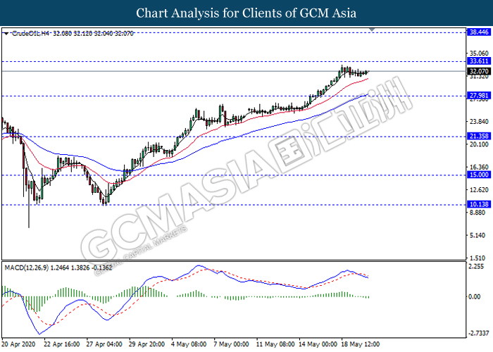 Bagi pasaran komoditi, harga minyak mentah telah melanjutkan keuntungannya sebanyak 0.54% ke $31.87 se tong. Pasaran minyak mentah telah didagang dengan lebih tinggi selepas data inventori yang positif telah dibebaskan. Menurut kepada Amerika Petroleum Institusi, stok minyak mentah Mingguan API daripada A.S. telah menyusut dari bacaan terdahulu sebanyak 7.580M ke bacaan sebanyak -4.800M, lebih baik daripada jangkaan pasaran iaitu 2.400M sambil mengurangkan kebimbangan mengenai masalah lebihan bekalan minyak mentah. Sebaliknya, aset-selamat emas telah meningkat sebanyak 0.20% ke $1748.15 se troy auns susulan dengan kekurangan sentimen selera risiko dalam pasaran FX selepas laporan dari laman web berita perubatan STAT mendakwa bahawa data awal dari vaksin COVID-19 Moerna Inc adalah tidak cekap.