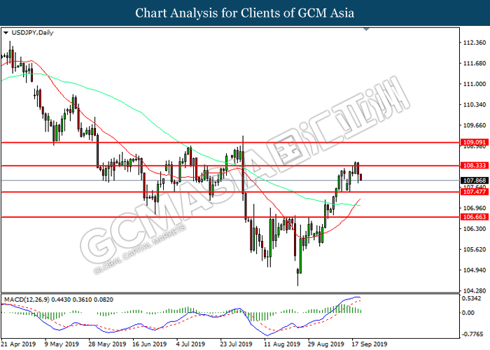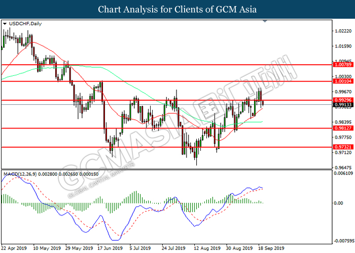 USD/CHF telah berundur dari puncak tiga bulan dan jatuh ke sesi rendah yang baru susulan dengan para pelabur masih menilai kenyataan hawkish dari Fed para hari Rabu. Pasangan mata wang tersebut telah menerima penjualan yang agresif selepas SNB mengumunkan dasar kewangan yang terbaru dan mengekalkan kadar faedah dengan tidak berubah pada -0.75%. SNB mengumumkan keputusan dasar monetari terbarunya dan menetapkan kadar deposit tidak berubah pada -0.75. Dalam kenyataan tersebut, bank pusat telah menegaskan bahawa pelaksanaan dasar kewangan adalah diperlukan sekiranya prestasi ekonomi adalah lebih lemah daripada yang dijangkakan. Malah, SNB juga mengulangi bahawa ia bersedia untuk bercampur tangan dalam pasaran Forex sekiranya ia perlu dan menurunkan ramalan inflasi serta ramalan GDP untuk 2019, justerunya, ia mencetuskan sentimen bullish bagi CHF. Sebaliknya, USD / JPY menurun selepas ia mencapai tahap tertinggi hampir satu bulan sejak awal bulan Ogos selepas Fed tidak memberi sebarang petunjuk mengenai langkah seterusnya bagi pelan dasar kewangan walaupun ia mengumumkan pemotongan kadar faedah 25 mata asas. Pada semalam, Bank of Japan (BoJ) mengekalkan kadar faedahnya dengan tidak berubah pada -0.10% seperti yang dijangkakan. Namun, Gabenor BoJ Kuroda mendakwa bahawa mereka tidak akan teragak-agak untuk melaksanakan pemotongan kadar faedah selanjutnya sekiranya terdapat risiko bagi ekonomi mengalami kemelesetan dan tidak dapat mencapai matlamat harga. Selain itu, menurut kepada Biro Statistik, data Japan National Core Consumer Price Index (CPI) turun sebanyak 0.5%, lebih lemah daripada bacaan bulan sebelumnya sebanyak 0.6%. Justeru, penurunan dalam CPI boleh meletakkan Yen Jepun di bawah tekanan penjualan kerana ia akan menyebabkan para pelabur untuk menjangkakan sentiment dovish dalam dasar monetari BoJ. Semasa penulisan, USD / CHF jatuh sebanyak 0.16% ke 0.9909 manakala USD / JPY menyusut sebanyak 0.07% ke 107.910.