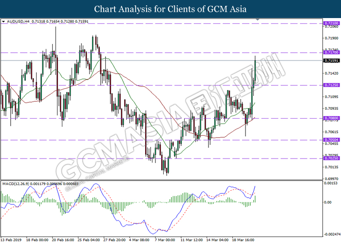 Indeks dolar telah menjunam berbanding dengan enam pasangan mata wang utama selepas Bank Pusat AS (Fed) mengekalkan kadar pada paras yang sama serta memansuhkan prospek peningkatan kadar. Dalam kenyataan terkini, Fed telah mencetuskan sentimen negatif dalam pasaran dengan membatalkan pelan mereka untuk menaikkan kadar pada tahun ini serta menyebabkan penurunan harga bon perbendaharaan ke paras terendah sejak awal tahun 2018. Selain itu, Fed juga menyempitkan jumlah sekuriti matang daripada $4.5 trilion ke $4 trilion. Peralihan yang dovish tersebut telah dijangka oleh para pelabur serta mendorong kepada kejatuhan terbesar bagi harga dolar sejak kemalangan ‘flash’ pada awal tahun 2018 sementara paras pelabur meninggalkan pasaran dolar. Indeks dolar telah menurun sebanyak 0.10% ke 95.28 semasa penulisan. Sebaliknya, pasangan AUD/USD telah melonjak sebanyak 0.65% ke 0.7161 semasa penulisan berikutan dengan penambahbaikan kadar pengangguran. Menurut kepada data rasmi, kadar pengangguran Australia telah menurun ke paras terendah tujuh tahun sebanyak 4.9%, mencecahkan jangkaan pasaran sebanyak 5.0%. Tambahan pula, pekerjaan separuh masa juga meningkat dengan ketara ke paras 11.9K berbanding dengan terdahulunya sebanyak -24.3K sambil menunjukkan perkembangan yang kukuh dalam pasaran pekerjaan.