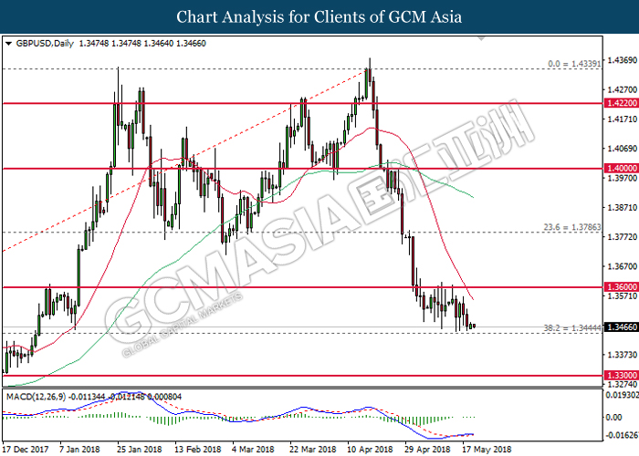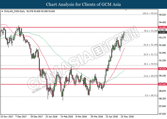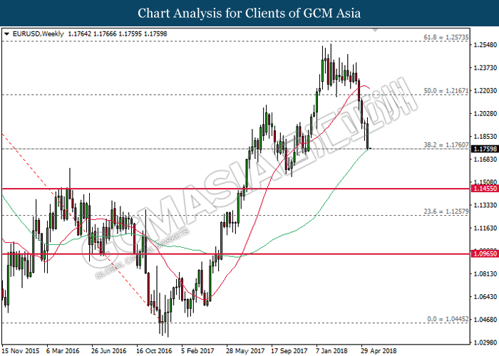 Euro melanjutkan kerugiannya sebanyak 0.20% ke $1.1771 berbanding dengan dolar AS. Mata wang tunggal tersebut menerima tekanan berikutan dengan risiko politik yang tinggi dari Itali selepas parti Five-Star Movement dan League membentuk kerajaan gabungan dan ia berkemungkinan untuk menjejaskan keadaan ekonomi dengan cadangan perbelanjaan kerajaan yang tinggi.