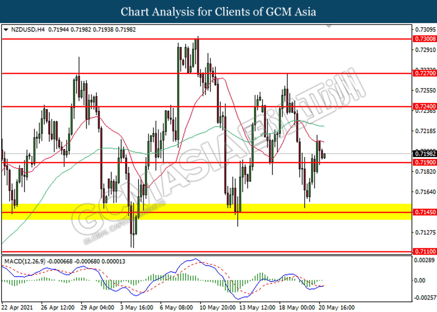NZDUSD, H4: NZDUSD telah didagang dengan lebih tinggi selepas ia melantun dari paras bawahnya. MACD yang memaparkan isyarat bullish mencadangkan harganya untuk didagang dengan lebih tinggi bagi jangka pendek.