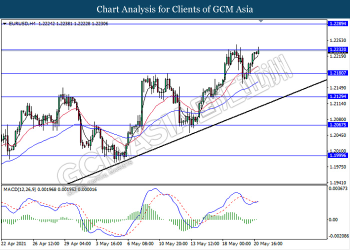 Semasa lewat sesi Asia, mata wang Euro yang didagang dengan dolar dan pasangan mata wang lain terus melanjutkan keuntungannya susulan dengan pasaran kekal optimis terhadap pemulihan ekonomi dalam jangka panjang. Menurut kepada data, jumlah kes COVID-19 telah menunjukkan penurunan sebanyak 60% dalam kes mingguan. Dengan kempen vaksinasi Eropah terus berjalan dengan kukuh dan melihat keputusan yang lebih baik, kerajaan juga melonggarkan sekatan sosial dan membuka kembali ekonomi dengan perlahan-lahan. Menurut kepada laporan, kesepakatan telah dicapai untuk memperkenalkan pas perjalanan COVID di seluruh EU untuk musim panas. Pas tersebut akan membolehkan individu yang telah diberi vaksin pergi ke EU tanpa pemeriksaan dan kuarantin. Pada masa penulisan, EUR/USD meningkat sebanyak 0.07% kepada 1.2229.