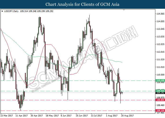 USDJPY, Daily: USDJPY didagang dengan lebih rendah selepas ia berundur dari tahap rintangan yang kukuh iaitu 109.40. Kedua-dua garisan MA yang masih melebarkan jarak dan menuju ke bawah mencadangkan bias menurun kepada USDJPY untuk menuju ke tahap sokongan 108.80.