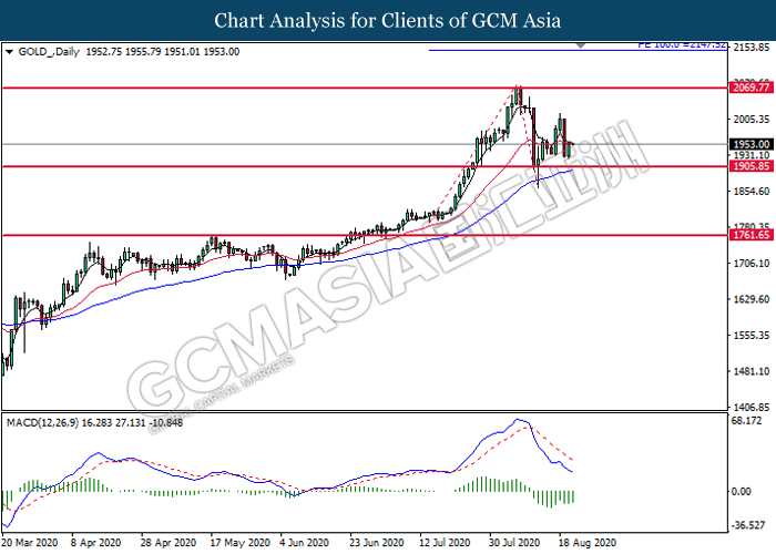 Indeks dolar yang mengukur nilainya terhadap sekumpulan enam mata wang utama merosot ke tahap yang lebih rendah selepas serangkaian data ekonomi yang suram pada hari semalam memudar daya tarikan pasaran indeks dolar. Menurut Jabatan Tenaga Kerja, terdapat sekitar 1,106 ribu orang Amerika memohon insurans pengangguran pada minggu lalu, menunjukkan bahawa pandemi novel terus menekan ekonomi. peningkatan jumlah orang yang memohon insurans pengangguran menimbulkan keraguan pasaran terhadap pemulihan ekonomi AS, sementara jumlah kes yang disahkan setiap hari masih dalam tahap terpantas tanpa tanda penurunan. Selain itu, indeks Philadephia Fed Manufacturing AS juga dibebaskan pada bacaan yang mengecewakan iaitu 17.2, tersasar ramalan ekonomi pada 21.0, semakin mengukuhkan pandangan pasaran mengenai penyusutan kadar pemulihan ekonomi AS. Dari segi geopolitik, China mengkritik bahawa ‘Beijing akan mengambil semua langkah yang diperlukan’ untuk melindungi Huawei Technologies dari perlakuan tidak adil oleh AS. Namun, China tidak mendedahkan rancangan mereka untuk membalas dendam terhadap AS, tetapi menekankan bahawa AS harus segera memperbaiki kesalahan mereka. Semasa penulisan, indeks dolar turun 0.10% kepada 92.70.