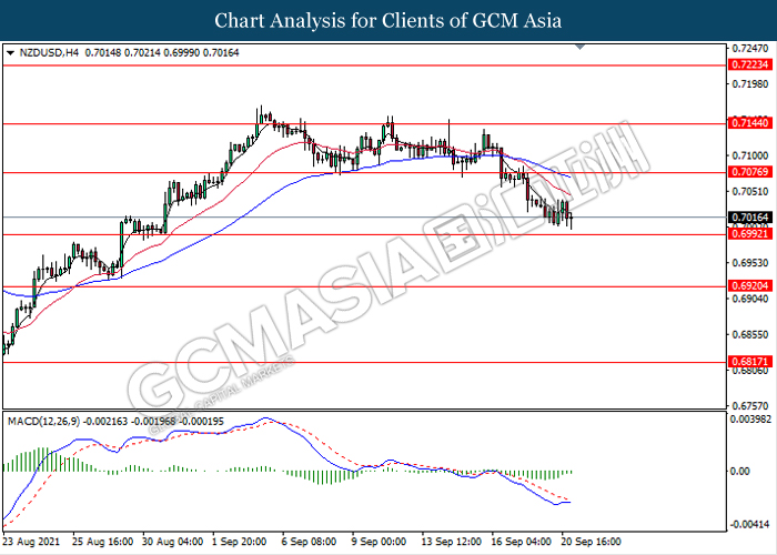 Dolar New Zealand yang didagang terhadap dolar AS dan pasangan mata wang lain telah jatuh dengan latar belakang nada yang dovish dari bank pusat New Zealand (RBNZ). Menurut kepada Penolong Gabenor RBNZ Christian Hawkesby, bank pusat secara global adalah cenderung untuk mengikuti jalan yang lancar dan mengekalkan dasar mereka dengan tidak berubah oleh disebabkan ketidakpastian dan risiko. Beliau menyampaikan keputusan Reserve Bank of New Zealand (RBNZ) untuk menangguhkan kenaikan kadar faedah untuk memberikan rangsangan bagi menyokong pemulihan ekonomi. Di samping itu, ketakutan yang berterusan terhadap isu China Evergrande juga membebani pasangan ini. Spekulasi bahawa Evergrande berada di ambang kemuflisan telah mengurangkan sentimen risiko sambil mendorong para pelabur untuk mengalihkan portfolio mereka kepada dolar AS sebagai tempat selamat. Pasangan ini juga melanjutkan kerugiannya di tengah-tengah spekulasi pasaran mengenai pengumuman Fed untuk pengetatan dasar semasa mesyuarat dasar kewangan yang akan datang. Dasar kewangan yang ketat di AS dijangka dapat menurunkan bekalan wang dan meningkatkan daya tarikan dolar AS. Pada masa penulisan, pasangan NZD / USD telah merosot sebanyak 0.11% kepada 0.7016.