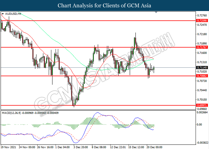 Dolar Australia melanjutkan kerugiannya susulan dengan kekurangan sentimen selera risiko dalam pasaran kewangan global di tengah-tengah peningkatan kes-kes Covid-19 Omicron di seluruh dunia, yang mendorong para pelabur mengalihkan portfolio mereka ke arah mata wang selamat yang lain. Menurut kepada A.S. Disease Control and Prevention (CDC), AS telah melaporkan kematian pertamanya yang berkaitan dengan varian Omicron di Texas. Selain itu, World Health Organization (WHO) telah menegaskan bahawa kadar penyebaran untuk varian Omicron adalah lebih tinggi daripada varian Delta dan menyebabkan jangkitan pada orang yang telah diberi vaksin atau yang telah memulih daripada penyakit Covid-19. Namun begitu, Dolar Australia telah mengehadkan kerugiannya berikutan Rizab Bank Australia (RBA) melancarkan nada hawkish mereka terhadap perkembangan ekonomi di Australia. Menurut kepada minit mesyuarat RBA terkini, bank pusat Australia kekal optimisme bahawa penyebaran varian Omicron tidak akan menjejaskan pemulihan ekonomi yang berterusan, sambil mendakwa bahawa mereka mungkin menamatkan pelonggaran kuantitatif lebih awal daripada jangkaan. Semasa penulisan, AUD/USD telah menyusut sebanyak 0.01% ke 0.7108.