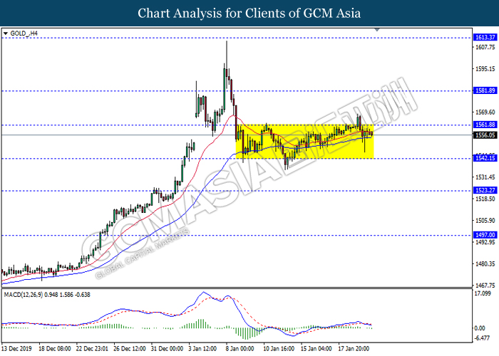 GOLD_, H4: Harga emas kekal didagang dalam saluran sisi sementara ia sedang menguji berhampiran dengan tahap rintangan 1561.90. Oleh kerana kekurangan isyarat dan arah yang jelas dari MACD, ia adalah dicadangkan untuk menunggu sehingga isyarat yang lebih lanjut muncul sebelum memasuki pasaran.