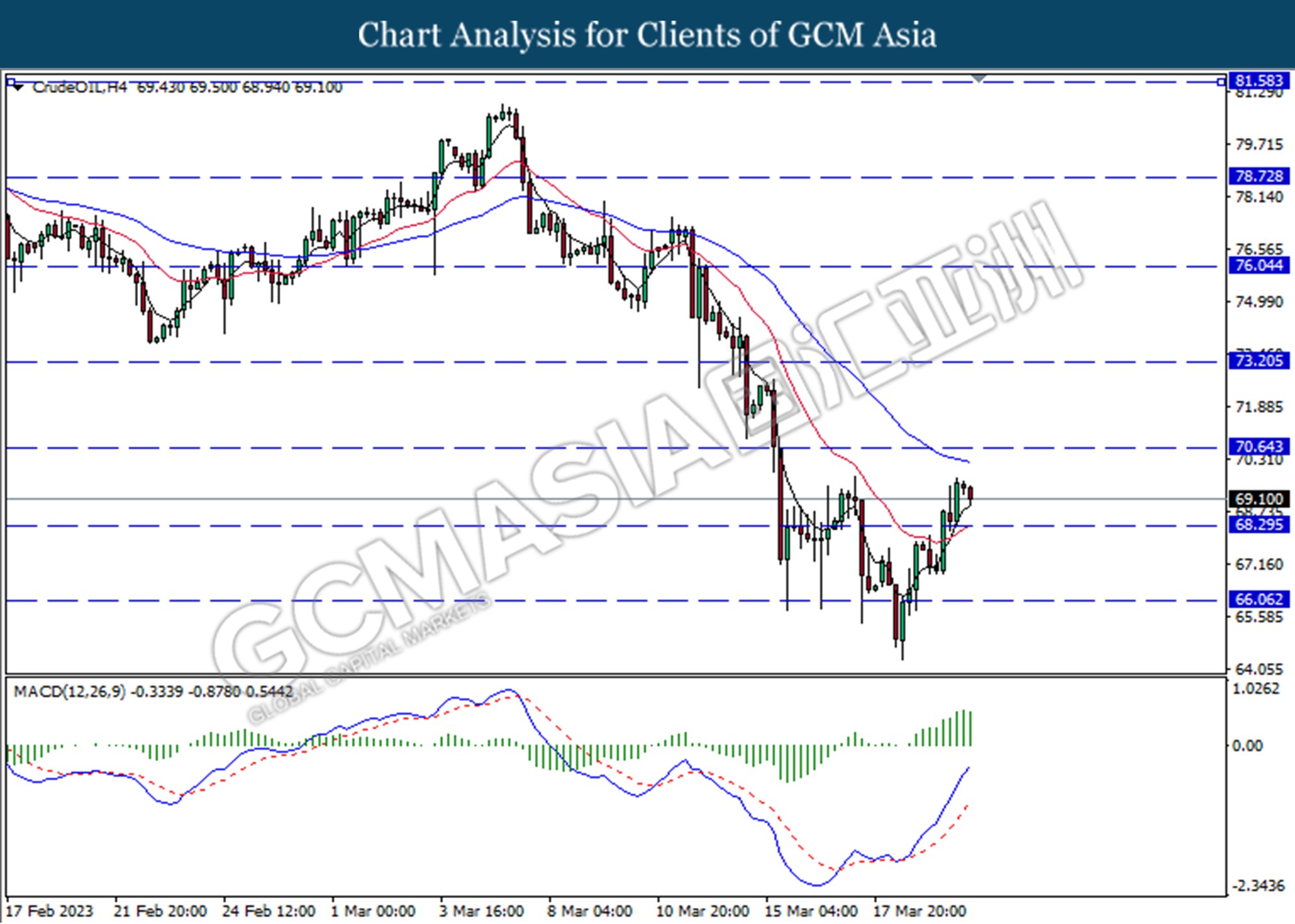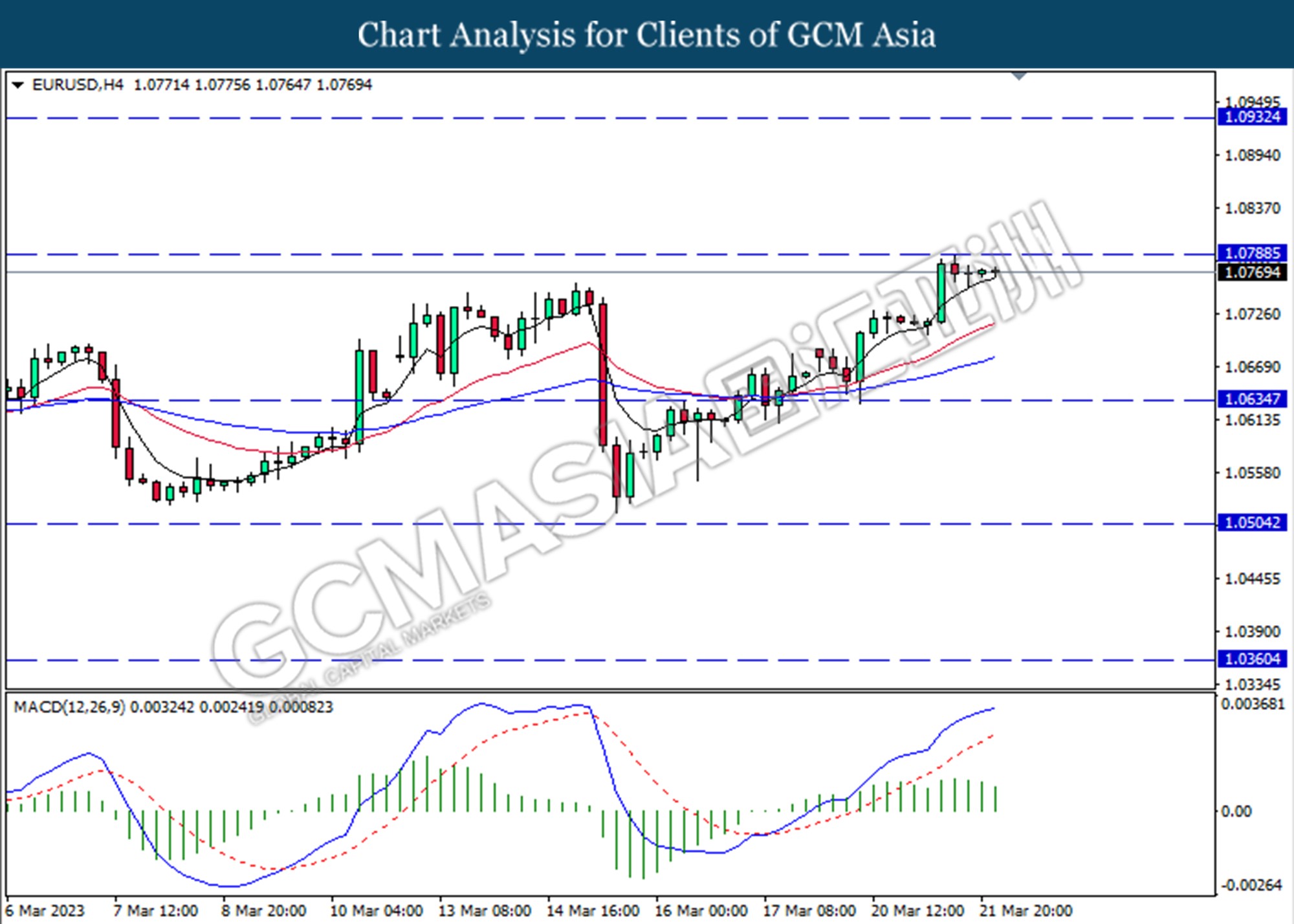 GBPUSD, H4: GBPUSD telah didagang dengan lebih tinggi selepas ia melantun daripada tahap rendah. Namun, MACD yang memaparkan momentum bearish yang berkurangan mencadangkan pasangan ini untuk mengalami pembetulan teknikal dalam jangka masa yang pendek.