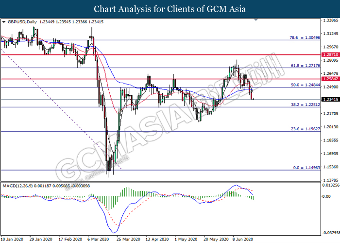 Indeks dolar yang mengukur nilainya terhadap sekumpulan enam mata wang utama melonjak kerana daya tarikan dolar sebagai aset yang selamat meningkat walaupun para pelabur masih bimbang terhadap pemulihan ekonomi AS. Sejak tercetusnya Coronavirus, ekonomi global telah memasuki ke tahap kemelesetan yang belum pernah terjadi sebelumnya di mana kegiatan ekonomi terpaksa dihentikan, sebagai langkah untuk mengurangkan kejatuhan virus. Walau bagaimanapun, peningkatan ketara kes koronavirus baru harian di AS dan beberapa negara lain seperti Jerman telah meningkatkan kebimbangan pasaran terhadap kemunculan wabak virus gelombang kedua. Pada minggu lalu, negara AS telah melaporkan lebih daripada 30,000 kes baru dan ia telah memecah rekod kes baru harian tertinggi sejak 1 Mei di mana negeri Florida mempunyai jumlah kes baru tertinggi antara negeri-negeri. Di samping itu, kluster virus yang baru juga telah dikesan di negara-negara yang telah berjaya mengawal penyebaran virus selama beberapa bulan terakhir seperti China dan Jerman, meningkatkan ketakutan terhadap kemunculan virus di negara-negara ini sekali lagi. Oleh itu, pelabur memilih untuk melarikan diri ke mata wang safe haven untuk mengelakkan risiko kemerosotan ekonomi yang mungkin disebabkan oleh wabak gelombang virus yang baru. Semasa penulisan, indeks dolar meningkat 0.04% ke 97.65.