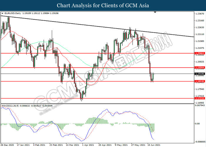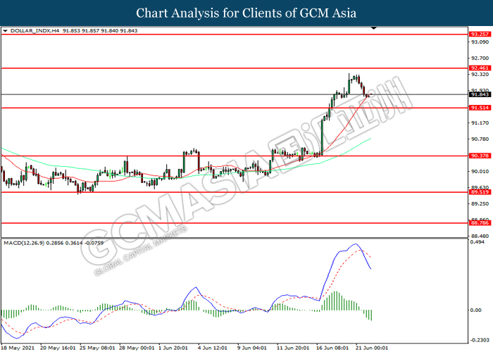 Indeks Dolar yang mengukur nilainya terhadap sekumpulan enam mata wang utama telah mencatat kerugiannya selepas seorang ahli Federal Reserve mendakwa bahawa ekonomi AS masih belum bersedia bagi Bank Pusat AS untuk mengetatkan dasar monetari, walaupun prospek ekonomi di AS telah menjadi lebih baik. Anggota Federal Reserve John William menegaskan Fed harus mematuhi syarat-syarat kerangka dasar monetari yang berkembang walaupun ekonomi semakin baik sepanjang masa. Komen itu muncul menjelang keterangan berjadual Jerome Powell di Kongres pada hari Selasa. Selain itu, beliau juga mengulangi bahawa kadar inflasi dijangkakan akan turun ke arah tujuan Federal Reserve dalam jangka panjang sambil menyatakan bahawa lonjakan harga pengguna saat ini adalah sementara. Walaupun demikian, pernyataan keseluruhan dari Federal Reserve tetap kabur, justerunya para pelabur akan terus memantau perkembangan mengenai data-data ekonomi serta pernyataan dasar yang lebih lanjut untuk menjangkakan kemungkinan pergerakan ke atas Dolar AS. Semasa penulisan, Indeks Dolar telah menyusut sebanyak 0.41% ke 91.85.