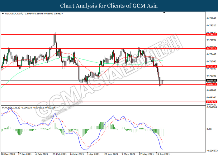 NZDUSD, Daily: NZDUSD telah didagang dengan lebih tinggi selepas ia melantun dari tahap sokongan 0.6940. MACD yang memaparkan momentum bearish yang berkurangan mencadangkan pasangan ini untuk melanjutkan keuntungannya ke arah tahap rintangan 0.7120.
