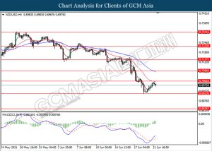NZDUSD, H4: NZDUSD telah didagang dengan lebih tinggi sementara ia sedang menguji berhampiran dengan tahap rintangan 0.7000. MACD yang memaparkan isyarat momentum bullish mencadangkan pasangan ini untuk melanjutkan keuntungannya selepas ia memecah tahap rintangan tersebut.