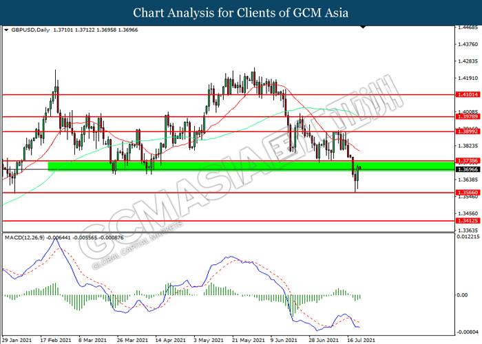 GBPUSD, Daily: GBPUSD telah didagang dengan lebih tinggi sementara kini menguji di tahap rintangan 1.3740. MACD yang memaparkan momentum bearish yang berkurangan mencadangkan pasangan ini untuk melanjutkan keuntungannya selepas ia memecah tahap rintangan tersebut.