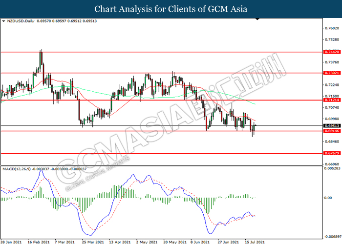 NZDUSD, Daily: NZDUSD telah didagang dengan lebih rendah sementara kini menguji di tahap sokongan 0.6915. MACD yang memaparkan momentum bearish yang berkurangan mencadangkan pasangan ini untuk mengalami pembetulan teknikal bagi jangka pendek.