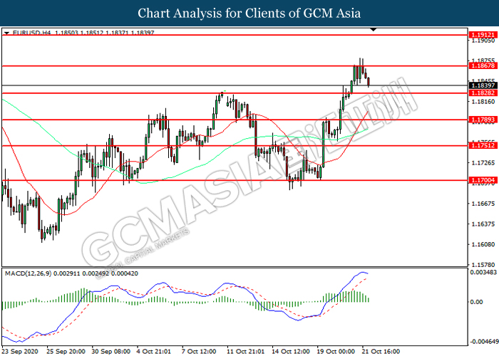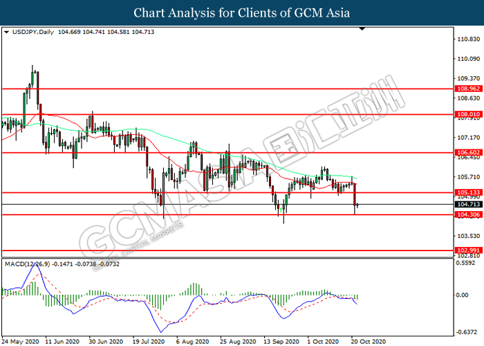 Di pasaran komoditi, harga minyak mentah melanjutkan kerugian dan menjunam sebanyak 0.50% kepada $39.75 setong pada masa penulisan berikutan dengan prospek permintaan yang lemah. Dengan jangkitan COVID-19 di AS dan Eropah terus mencapai rekod harian, sekatan dan penutupan pelancongan dari China sekali lagi akan mengurangkan permintaan bahan bakar dan membebani harga minyak. Di samping itu, skeptisisme terhadap paket rangsangan juga menambah kepada pandangan yang semakin teruk ketika Presiden Donald Trump menuduh Demokrat menahan perjanjian yang sudah kompromi. Sebaliknya, harga emas turun sebanyak 0.55% kepada $ 1913.95 se troy auns pada masa penulisan di tengah-tengah lantunan dalam dolar.