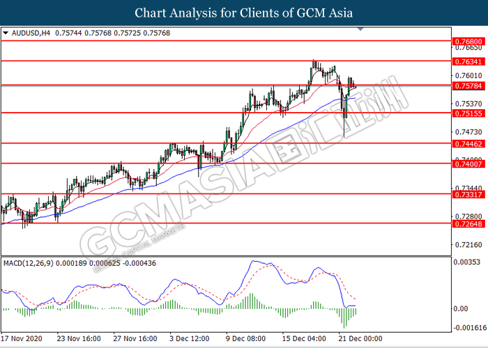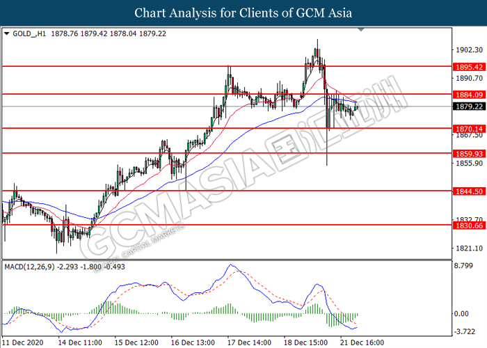Dalam pasaran komoditi, harga minyak mentah turun sebanyak 0.04% ke $47.90 setong semasa penulisan di tengah mutasi virus di UK telah meningkatkan kebimbangan pasaran terhadap prospek permintaan minyak. Baru-baru ini, lebih daripada 20 negara di seluruh dunia telah memutuskan untuk menutup sempadan mereka ke Britain di tengah-tengah ketakutan terhadap strain baru coronavirus. Selain itu, harga emas naik 0.15% ke $1879.70 setroy auns di tengah virus yang bermutasi meningkatkan permintaan aset safe-haven.