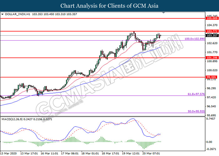 Indeks dolar yang mengukur nilainya terhadap sekumpulan enam mata wang utama gagal mengekalkan keuntungan hari Jumaat terakhir susulan dengan pelan rangsangan Covid-19 gagal untuk diluluskan di tahap pertama iaitu tahap Senate. Pada minggu lepas, kerajaan AS bekerja rapat dengan Federal Reserve dalam isu pandemik koronavirus, dan akhirnya merangka satu pakej rangsangan besar untuk menyokong ekonomi AS daripada kesan negatif virus ini. Secara terperinci, rancangan rangsangan ini terdiri daripada $ 1,200 cek untuk kebanyakan orang dewasa U.S dan sejumlah besar dana yang dirancang akan digunakan untuk membantu perniagaan tempatan yang telah menghentikan operasi semasa wabak pandemik. Walau bagaimanapun, pelan ini kebanyakannya ditolak oleh ahli Parti Democratic kerana mereka berpendapat bahawa usul-usul itu harus digubal semula, meletakkan keputusan undian menjadi 47 berbanding 47. Bagaimanapun, Presiden Amerika Syarikat iaitu Donald Trump percaya bahawa penggubal undang-undang akan mencapai kesepakatan pada masa yang akan datang, dikatakan oleh beliau dalam akhbar taklimat selepas undi berakhir. Semasa sesi dagangan Asia, indeks dolar turun sebanyak 0.01% ke 102.80. Sebaliknya, pasangan EUR/USD mencatatkan kerugianya sebanyak 0.19% ke 1.0670 di tengah-tengah penyebaran coronavirus di zon Eropah. Menurut sumber berita terbaru, Itali telah melaksanakan sekatan pergerakan di negara ini selepas kematiannya meningkat 651 kepada jumlah 5476, sebagai usaha untuk mencegahkan penyebaran virus yang cepat ini.