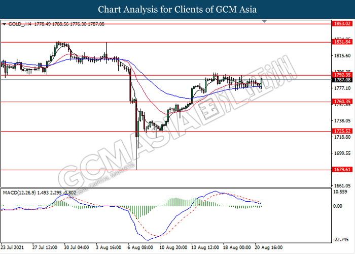 Di pasaran komoditi, harga minyak mentah turun sebanyak 0.11% kepada $ 63.15 setong semasa penulisan di tengah-tengah kebimbangan berterusan mengenai varian Delta berterusan. Setakat ini, penyebaran varian Delta COVID-19 terus berlanjutan, dengan Korea Selatan dan Vietnam di antara negara-negara tersebut mengetatkan langkah-langkah sekatan. Jepun menggandakan ujian COVID-19 dan mengubah strateginya setelah jangkitan baru setiap hari mencapai tahap tertinggi pada hari Jumaat. Di China, pengimport minyak teratas di dunia, China tetap kekal ‘toleransi sifar’ terhadap dasar COVID-19, yang bermaksud langkah-langkah yang ketat untuk mengekang wabak terbaru dalam negara itu. Sekatan tersebut bermaksud gangguan dalam rantaian bekalan dan penghantaran global kerana pelabuhan telah diarahkan untuk menutup. Sebaliknya, harga emas terus stabil dan meningkat sebanyak 0.34% kepada $1787.16 se troy auns pada masa penulisan berikutan dengan kelemahan dolar.