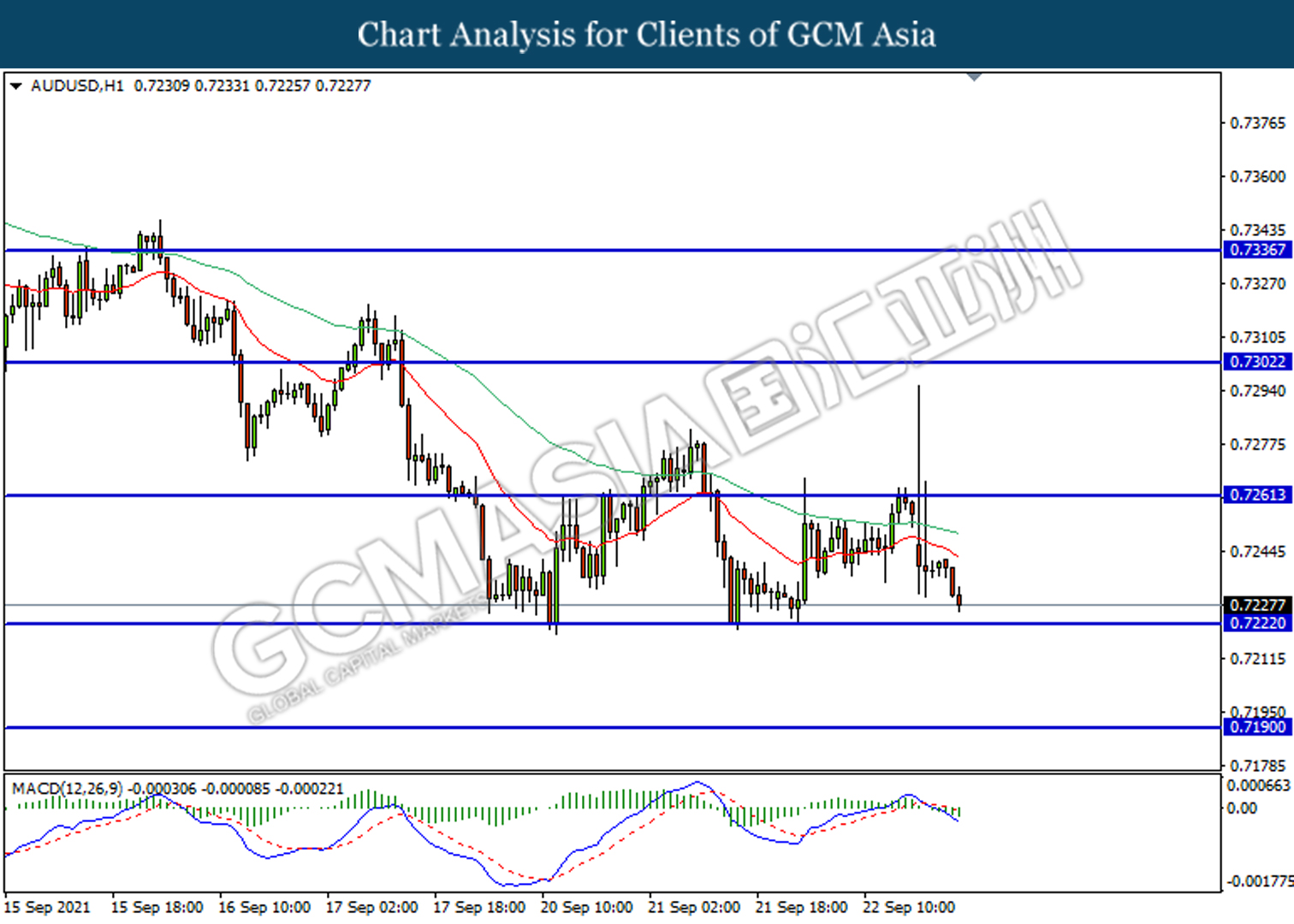 AUDUSD, H1: AUDUSD telah didagang dengan lebih rendah selepas ia berundur dari 0.7260. MACD yang memaparkan isyarat bearish mencadangkan pasangan ini untuk meneruskan kerugiannya selepas pemecahan di 0.7220.