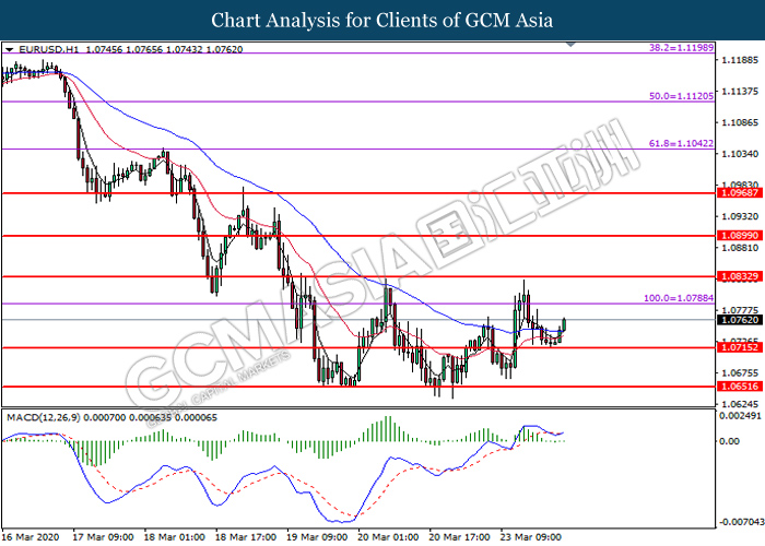 Di pasaran komoditi, harga minyak mentah meningkat sebanyak 1.96% ke $23.89 setong susulan dengan sentimen pasaran terus bercampur-campur selepas Federal Reserve melaksanakan pelan rangsangan yang besar-besaran kepada ekonomi. Setakat ini, ketidakseimbang antara bekalan dan permintaan minyak terus menimbang komoditi hitam ini, dan pasaran kini masih memberikan tumpuan terhadap perkembangan perang minyak antara Arab Saudi dan Rusia. Sebaliknya, emas naik 0.56% ke $1561.10 satu troy auns disebabkan oleh kelemahan dolar.