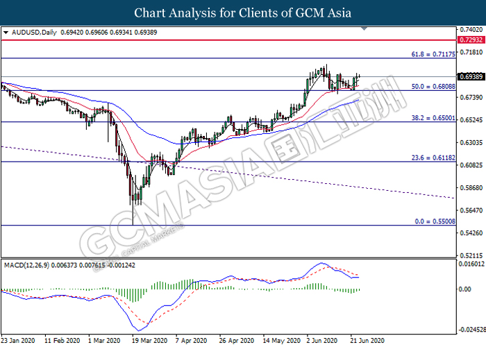 AUDUSD, Daily: AUDUSD telah didagang dengan lebih tinggi selepas ia melantun dari tahap sokongan di 0.6810. MACD yang memaparkan isyarat momentum bearish yang berkurangan mencadangkan pasangan ini untuk melanjutkan keuntungannya dan menuju ke arah tahap sokongan di 0.7115.