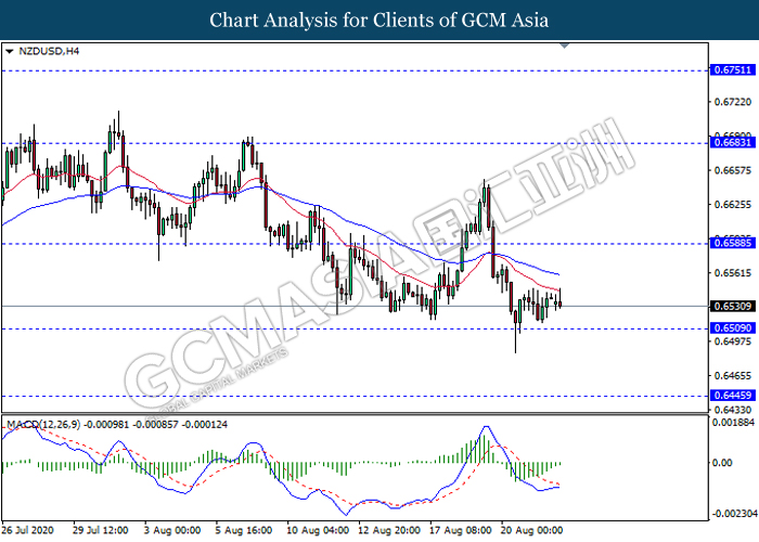 Semasa sesi akhir Asia, mata wang New Zealand Kiwi yang didagang terhadap dolar dan pasangan mata wang lain tetap lemah susulan dengan penyusutan dalam data Retail Sales. Menurut kepada Statistik New Zealand, penjualan runcit dalam New Zealand untuk suku kedua telah merosot kepada -14.6%, lebih rendah daripada keputusan sebelumnya sebanyak -1.2%. Selain itu, nada bearish dari RBNZ juga terus menekan Kiwi. Pada hari Jumaat, Ketua Ekonomis Yuong Ha menyatakan bahawa keputusan kadar negatif akan bergantung pada kesihatan ekonomi dan tidak akan teragak-agak untuk melaksanakannya jika dan bila waktunya tiba. Dari segi koronavirus, negara tersebut masih bergelut dengan koronavirus yang juga menyebabkan Perdana Menteri Jacinda Arden untuk menangguhkan pilihan raya yang akan datang untuk empat minggu kepada 17 Oktober. Pada waktu penulisan, NZD/USD jatuh sebanyak 0.09% kepada 0.6530.