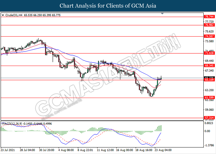 Di pasaran komoditi, harga minyak mentah melonjak sebanyak 0.55% kepada $65.85 setong semasa penulisan susulan dengan kelulusan AS terhadap vaksin Covid-19 meningkatkan harapan untuk permintaan bahan bakar. Menurut kepada perkembangan terbaru, Pentadbiran Makanan dan Dadah A.S. (FDA) yang membenarkan vaksin dua dos Pfizer / BioNtech untuk penggunaan kecemasan pada bulan Disember lalu, kini telah mengeluarkan kelulusan penuh untuk digunakan pada orang yang berumur 16 tahun ke atas. Pegawai kesihatan berharap langkah tersebut akan meyakinkan orang Amerika yang tidak divaksinasi bahawa vaksin tersebut adalah selamat dan berkesan serta boleh meningkatkan jumlah vaksinasi. Sebaliknya, harga emas meningkat sebanyak 0.11% kepada $ 1802.75 se troy auns sekali pada masa penulisan berikutan kelemahan dolar.