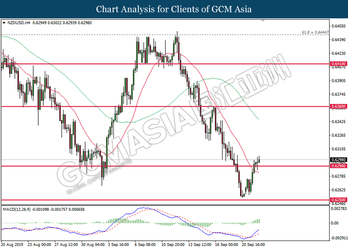 NZDUSD, H4: NZDUSD telah didagang dengan lebih tinggi selepas ia melantun dari paras rendahnya. MACD yang memaparkan isyarat bullish mencadangkan pasangan ini untuk didagang dengan lebih tinggi bagi jangka pendek sebagai pembetulan teknikal.