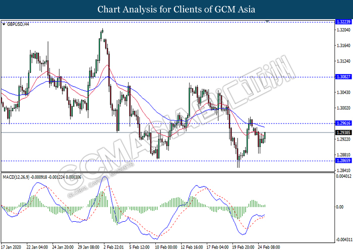 Euro telah melanjutkan keuntungannya dari paras rendah semenjak semalam susulan dengan pemulihan sentimen pasaran terhadap perniagaan di Jerman. Menurut kepada Ifo, Indeks Keadaan Bisnes di Jerman bagi bulan Februari telah meningkat ke 96.1, lebih tinggi daripada ramalan iaitu 95.3. Namun, dari empat sektor yang telah dikaji, hanya sektor pembuatan menerima peningkatan pada indeksnya sementara tiga yang lain seperti perkhidmatan, perdagangan dan pembangunan telah mengalami penyusutan. Tambahan pula, para penganalisis menegaskan bahawa data tersebut telah di kumpul sebelum koronavirus merebak di Itali. Virus tersebut telah menjangkiti 220 individual dan ia telah memaksa pihak kerajaan Itali untuk menutup beberapa bandar yang dipercayai permulaan wabak tersebut. Justeru, virus tersebut bakal memberi risiko kepada ekonomi Itali dan ia berkemungkinan besar untuk memberi impak kepada Jerman memandangkan kesemua negara di zon EU bergantung kepada satu sama lain. Semasa penulisan, pasangan EUR/USD meningkat sebanyak 0.08% ke 1.0861.