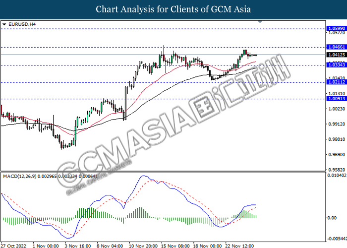 EUR/USD, yang didagang secara meluas oleh pelabur global meningkat pada semalam selepas data ekonomi yang optimis telah dikeluarkan. Menurut kepada Ifo Institute for Economic Research, Ifo Business Climate Index Jerman pada November meningkat daripada bacaan sebelumnya sebanyak 84.5 ke 86.3, melebihi ramalan pasaran sebanyak 85.0. Dengan itu, ia mungkin membayangkan bahawa kemelesetan ekonomi yang didorong oleh krisis tenaga dengan Rusia dan halangan rantaian bekalan boleh terbukti kurang teruk daripada jangkaan konsensus, yang meningkatkan keyakinan pasaran terhadap perkembangan ekonomi di Zon Euro. Selain itu, aliran keseluruhan mata wang Euro kekal bullish susulan dengan pendirian hawkish daripada ahli Bank Pusat Eropah (ECB). Menurut kepada Reuters, ahli lembaga ECB Isabel Schnabel telah menafikan cadangan kenaikan kadar yang lebih kecil, serta mengulangi bahawa langkah yang lebih lembut mungkin akan menghalang usaha untuk menurunkan risiko inflasi yang tinggi. Beliau juga berkata bahawa jangkaan untuk laluan kadar yang kurang agresif berkemungkinan akan menyebabkan pendirian dasar sebenar lebih jauh daripada apa yang diperlukan untuk membawa inflasi kembali ke sasaran 2%. Semasa penulisan, EUR/USD meningkat sebanyak 0.02% ke 1.0410.