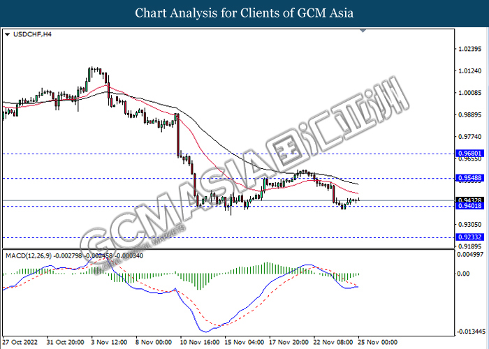 USDCHF, H4: USDCHF telah didagang dengan lebih tinggi selepas ia melantun dari tahap sokongan. MACD yang memaparkan momentum bearish yang berkurangan mencadangkan pasangan ini untuk melanjutkan keuntungannya.