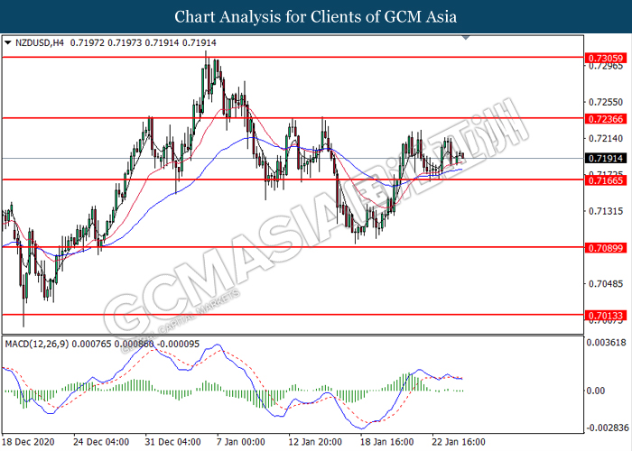 NZDUSD, H4: NZDUSD telah didagang dengan lebih rendah selepas ia berundur dari tahap yang lebih tinggi. MACD yang memaparkan isyarat momentum bearish yang berterusan mencadangkan pasangan ini untuk melanjutkan kerugiannya dan menuju ke arah tahap sokongan di 0.7165.