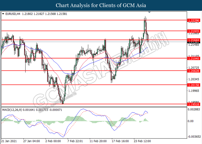 Indeks dolar yang mengukur nilainya terhadap sekumpulan enam mata wang utama melonjak berikutan dengan kenaikan hasil perbendaharaan 10 tahun AS yang tidak dijangka, meningkatkan daya tarikan pasaran bon. Semalam, hasil perbendaharaan 10 tahun naik ke tahap tertinggi dalam tempoh lebih dari satu tahun berikutan dengan permintaan di lelong bon kerajaan AS yang lebih lemah daripada yang dijangkakan. Secara terperincian, lonjakan hasil perbendaharaan akhir-akhir ini menunjukkan kepercayaan global bahawa bank pusat mungkin akan mengubah nada mereka dengan mengetatkan dasar pelonggaran ultra mereka, walaupun kebanyakan dari mereka tetap menunjukkan nada yang pesimis dalam ucapan baru-baru ini mengenai prospek ekonomi. Kepercayaan ini berasal dari jangkaan pelabur terhadap kadar inflasi dan prospek ekonomi masa depan selepas melancarkan pakej rangsangan yang besar serta program vaksinasi yang efektif. Selain itu, penurunan yang ketara dalam jumlah orang Amerika yang memohon insurans pengangguran juga telah meredakan kebimbangan pasaran terhadap kesihatan ekonomi di AS. Menurut kepada Jabatan Tenaga Kerja, Initial Jobless Claims AS dibebaskan pada 730K, lebih rendah dari yang diramalkan pada 838K, menunjukkan pemotongan pekerjaan di AS mulai menurun ketika program vaksinasi dipercepat. Semasa penulisan, indeks dolar meningkat 0.02% ke 90.20.