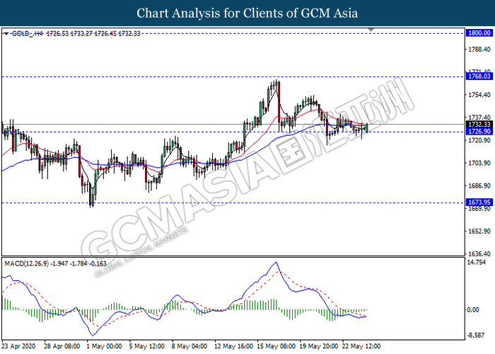 Di pasaran komoditi, harga minyak mentah kekal kukuh dan meningkat sebanyak 0.92% kepada $34.07 setong semasa penulisan berikutan dengan komen dari Rusia. Menurut laporan, Rusia menyatakan bahawa pengeluaran minyaknya hampir jatuh ke sasarannya iaitu 8.5 juta tong sehari (bpd) untuk bulan Mei dan Juni di bawah perjanjian pemotongan bekalannya dengan OPEC, dan ia meningkatkan sentimen pasaran. Sebaliknya, harga emas telah melonjak sebanyak 0.22% kepada 1732.66 se troy auns pada waktu penulisan di tengah-tengah kelemahan dolar.