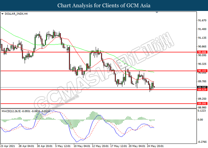 Indeks dolar yang mengukur nilainya terhadap sekumpulan enam mata wang utama telah melanjutkan kerugiannya selepas data-data ekonomi yang bearish telah dibebaskan dari rantau A.S. semalam, yang selanjutnya mengurangkan keyakinan pasaran ke atas perkembangan ekonomi di A.S. sambil mencetuskan penjualan yang ketara ke atas Dolar AS. Menurut kepada Conference Board, A.S. CB Consumer Confidence telah menyusut dengan ketara dari bacaan terdahulu sebanyak 117.5 ke bacaan sebanyak 117.2, lebih buruk daripada jangkaan pasaran sebanyak 119.2. Sementara itu, Census Bureau melaporkan bahawa A.S. New Home Sales telah menyusut dari bacaan terdahulu sebanyak 917K ke bacaan sebanyak 863K, tersasar dengan jangkaan pasaran sebanyak 970K. Tambahan pula, Dolar AS telah menerima momentum bearish yang lanjutnya selepas Hasil Perbendaharaan A.S. telah menurun susulan dengan para pelabur membuat spekulasi bahawa Bank Pusat AS akan tetap mengekalkan pelan pelonggaran dasar monetari walaupun terdapat tekanan inflasi semasa. Walau bagaimanapun, para pelabur akan terus memantau perkembangan mengenai wabak Covid-19 dan juga dasar-dasar monetari dari Bank Pusat A.S. untuk menerima isyarat dagangan yang lanjutnya.
