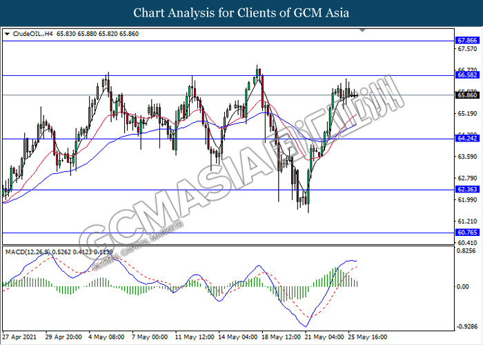 Bagi pasaran komoditi, harga minyak mentah telah melanjutkan keuntungannya sebanyak 0.15% ke $66.10 se tong semasa penulisan. Pasaran minyak mentah telah didagang dengan lebih tinggi susulan dengan prospek positif terhadap perkembangan vaksinasi Covid-19 telah meningkatkan daya tarikan ke atas komoditi minyak mentah. Sebaliknya, harga emas telah meningkat sebanyak 0.26% ke $1904.00 se troy auns semasa penulisan susulan dengan beberapa para pelabur telah bermula untuk mengalihkan pelaburan mereka ke arah aset selamat emas untuk melindungi diri dari risiko inflasi pada masa yang akan datang.