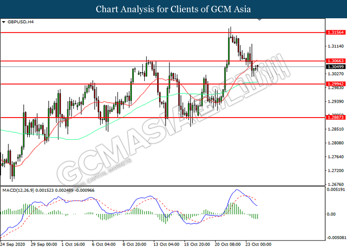 Paun Sterling telah mencatat kerugiannya pada hari Jumaat yang lalu selepas data-data ekonomi yang suram telah dibebaskan dari rantau UK. Menurut kepada Markti Economics, U.K. Composite Purchasing Managers’ Indeks (PMI) telah menyusut dengan ketara dari bacaan terdahulu sebanyak 55.7 ke 52.9, lebih buruk daripada jangkaan pasaran sebanyak 55.6. Sementara itu, U.K. Manufacturing Purchasing Managers Indeks (PMI) dan U.K. Services Purchasing Managers Indeks (PMI) telah memberi bacaan sebanyak 53.3 dan 52.3, yang menunjukkan lebih buruk daripada jangkaan pasaran masing-masing pada 54.3 dan 55.0. Oleh kerana data-data yang penting tersebut adalah lebih buruk daripada jangkaan pasaran, yang selanjutnya mengurangkan keyakinan pasaran ke atas perkembangan ekonomi di UK sambil mencetuskan penjualan yang ketara ke atas Paun Sterling. Selain itu, peningkatan kes-kes koronavirus yang mendadak dari rantau UK dan juga ketidakpastian mengenai masalah Brexit juga telah mengurangkan daya tarikan ke atas pasangan Paun Sterling. Walau bagaimanapun, Paun Sterling telah mengehadkan kerugiannya selepas data jualan runcit yang positif telah dibebaskan. Menurut kepada Office for National Statistik, U.K. Retail Sales untuk bulan yang lalu telah meningkat dari bacaan terdahulu sebanyak 0.9% ke bacaan sebanyak 1.5%, yang lebih baik daripada jangkaan pasaran sebanyak 0.4%. Semasa penulisan, GBP/USD telah menyusut sebanyak 0.4% ke 1.3042.