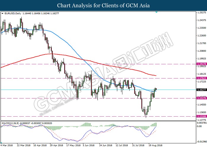 EURUSD telah melambung sebanyak 0.72% ke 1.1622 pada sesi minggu lalu Jumaat.