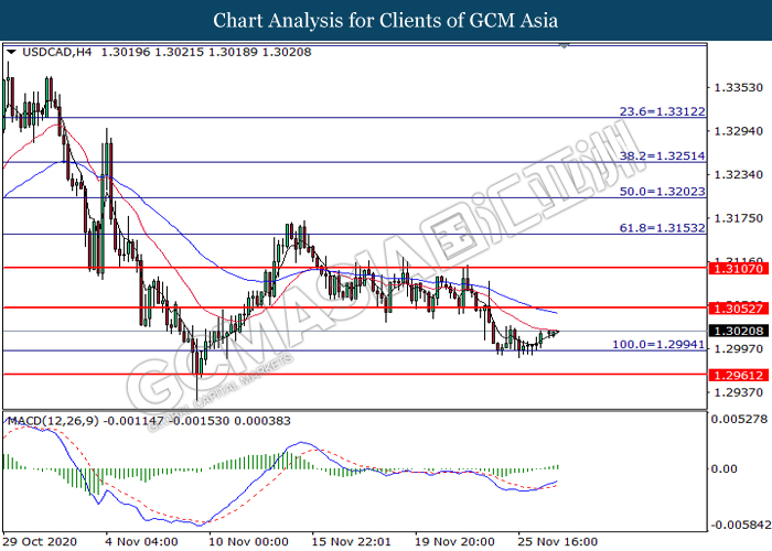 Indeks dolar yang mengukur nilainya berbanding dengan sekumpulan enam mata wang utama didagang berdekatan paras terendah dalam tempoh 3 bulan di tengah jumlah dagangan yang tipis kerana pasaran kewangan AS ditutup untuk cuti Thanksgiving. Walaupun begitu, peningkatan kes Covid-19 di AS masih mempengaruhi sentimen pasaran dolar AS, terus menekan dolar daripada pemulihan kerugiannya. Menurut kepada Statistik Worldometer, jumlah kes yang disahkan di AS telah mencecah paras 13 juta, sementara jumlah kematian telah meningkat ke hampir 270 ribu sejak tercetusnya Covid-19. Dengan latar belakang pandemik yang semakin memburuk, ekonomi AS gagal memulih dari kejatuhan virus yang telah ditunjukkan oleh data ekonomi baru-baru ini, seperti kenaikan yang jelas dalam data Tuntutan Pengangguran Awal. Di pasaran tenaga kerja AS, jumlah orang Amerika yang memohon tuntutan pengangguran meningkat dengan ketara pada minggu lalu, yang menunjukkan bahawa pelaksanaan langkah-langkah penguncian di beberapa negeri AS telah meningkatkan kadar pemecatan syarikat dan melemahkan pemulihan pasaran buruh. Selain itu, kesukaran peralihan kuasa yang merujkukan kepada Trump menolak untuk mengakui kekalahannya dalam pilihan raya AS telah meningkatkan kebimbangan pasaran terhadap ketegangan politik di AS. Semasa sesi dagangan awal Asia, indeks dolar meningkat 0.04% ke 92.05.