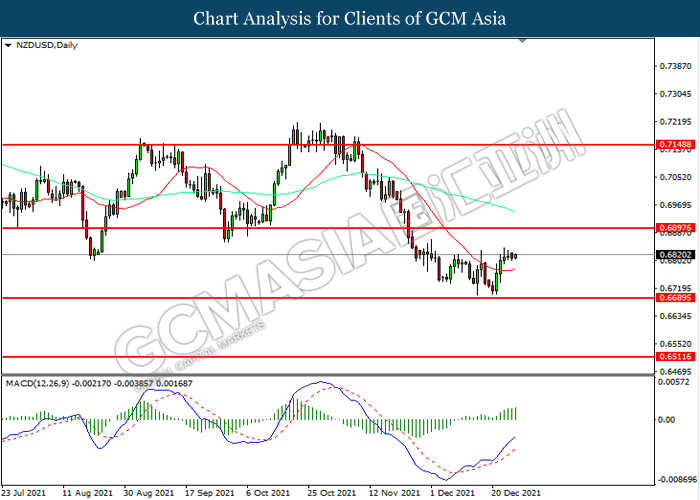 NZDUSD, Daily: NZDUSD telah didagang dengan lebih tinggi selepas ia melantun dari tahap sokongan 0.6690. MACD yang memaparkan momentum bullish mencadangkan pasangan ini untuk melanjutkan keuntungannya ke arah tahap rintangan 0.6895.