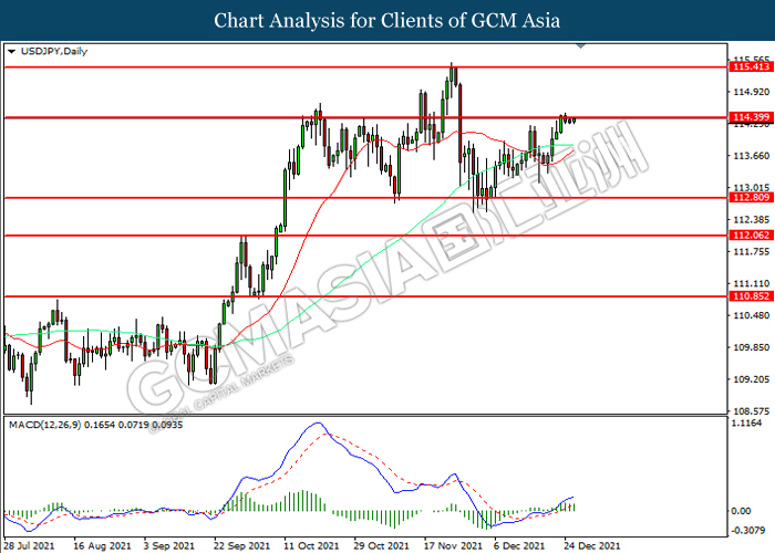 USDJPY, Daily: USDJPY telah didagang dengan lebih tinggi sementara kini menguji di tahap rintangan 114.40. MACD yang memaparkan momentum bullish mencadangkan pasangan ini untuk melanjutkan keuntungannya selepas ia memecah tahap rintangan tersebut.