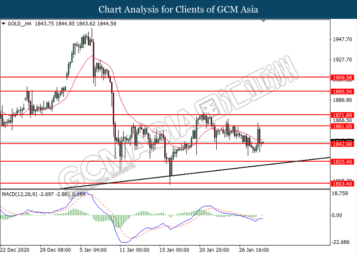 Indeks dolar yang mengukur nilainya terhadap sekumpulan enam mata wang utama menjunam selepas pelabur mencerna serangkaian data ekonomi bercampur yang diumumkan malam tadi. Menurut kepada Biro Analisis Ekonomi, GDP AS untuk suku keempat pada tahun 2020 berada pada 4.0%, selari dengan bacaan ramalan ekonomi tetapi lebih rendah daripada bacaan sebelumnya, menandakan kemerosotan ekonomi yang jelas di tengah wabak tersebut. Dengan gambaran besar, tahun 2020 adalah tahun yang buruk bagi Amerika kerana GDP tahunan AS menurun sebanyak 3.5% berbanding dengan tahun sebelumnya, dan ia adalah kemerosotan yang terburuk sejak tahun 1946. Selain itu, ia perlu diperhatikan bahawa pemulihan ekonomi AS masih dalam peringkat permulaan, negara masih jauh dari kegemilangan ekonomi pra-pandemik dan pertumbuhan ekonomi semasa tidak menunjukkan tanda-tanda berkembang pada masa ini. Namun, kerugian dolar terhad setelah AS mengumumkan data pekerjaan utama. Dalam minggu yang lalu, jumlah orang Amerika yang menuntut insurans pengangguran telah meningkat dengan kadar yang lebih lemah dari bacaan sebelumnya iaitu 914K ke 847K. Kebangkitan aktiviti pengambilan pekerja disumbangkan terutamanya oleh pemberian vaksin dan keyakinan majikan terhadap sokongan kewangan tambahan dari pentadbiran Biden. Semasa penulisan, indeks dolar turun 0.12% ke 90.55.