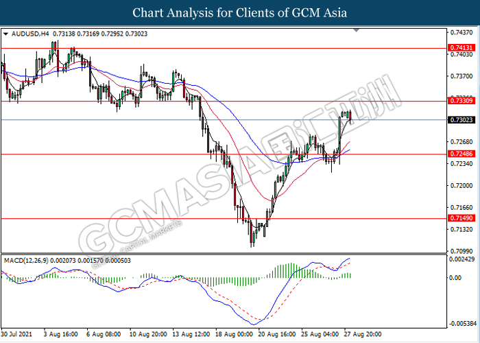 Dolar Australia yang didagang terhadap dolar dan pasangan mata wang lain telah meningkat berikutan dengan data ekonomi yang positif dan juga sokongan daripada kelemahan dolar yang disebabkan oleh Fed yang dovish. Menurut kepada Biro Statistik Australia, data Company Gross Operating Profits Australia telah melonjak kepada 7.1%, melebihi jangkaan pasaran dan bacaan sebelumnya masing-masing sebanyak 3% dan -0.6%. Selain itu, kenyataan yang dovish dari Fed pada hari Jumaat lalu telah meningkatkan selera risiko global yang terus meningkatkan momentum untuk Aussie. Walaupun Powell memberikan petunjuk untuk mengetatkan dasar tahun ini, bank pusat menahan diri dan tidak menawarkan waktu yang tepat untuk pengetatan dan menunjukkan jurang antara pengetatan dan kenaikan kadar faedah. Komen seperti “Kami akan menilai data  dan risiko yang berkembang dengan teliti” telah menawarkan pengesahan tambahan kepada pasaran bahawa dasar kewangan yang longgar akan dikekalkan untuk masa ini. AUD/USD meningkat sebanyak 0.09% kepada 0.7303.