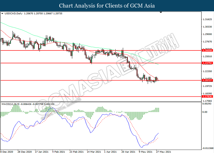 USDCAD, Daily: USDCAD telah didagang dengan lebih rendah sementara kini menguji di tahap sokongan 1.2075. Namun, MACD yang memaparkan momentum bullish mencadangkan pasangan ini untuk mengalami pembetulan teknikal bagi jangka pendek.