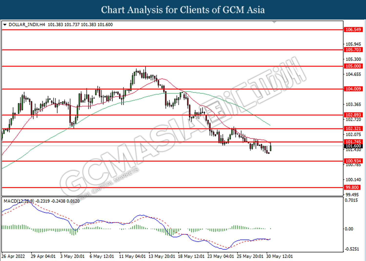 Tahap sokongan: 100.95, 99.80